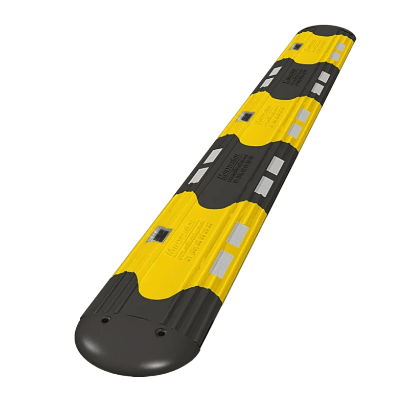 Para mayor seguridad, el Reductor 45 puede incorporar vialetas solares LED, lo que mejora su visibilidad durante la noche o en condiciones de baja iluminación. Además, está disponible en colores sólidos negro y amarillo, resistentes a la decoloración y sin necesidad de mantenimiento.